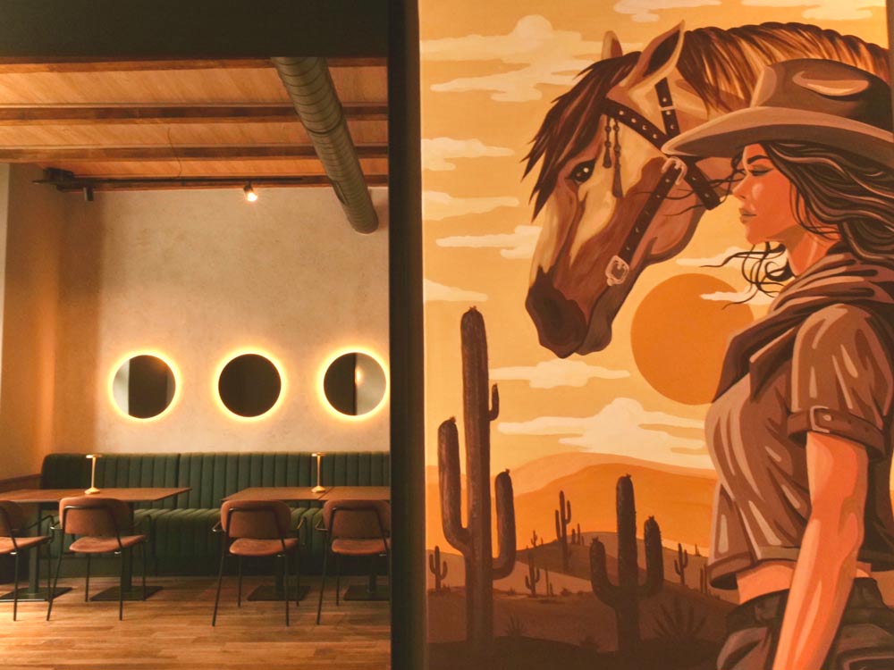 Decor modern cu accente rustice texane, zone instagramabile și ambianță caldă pentru momente memorabile cu familia și prietenii.